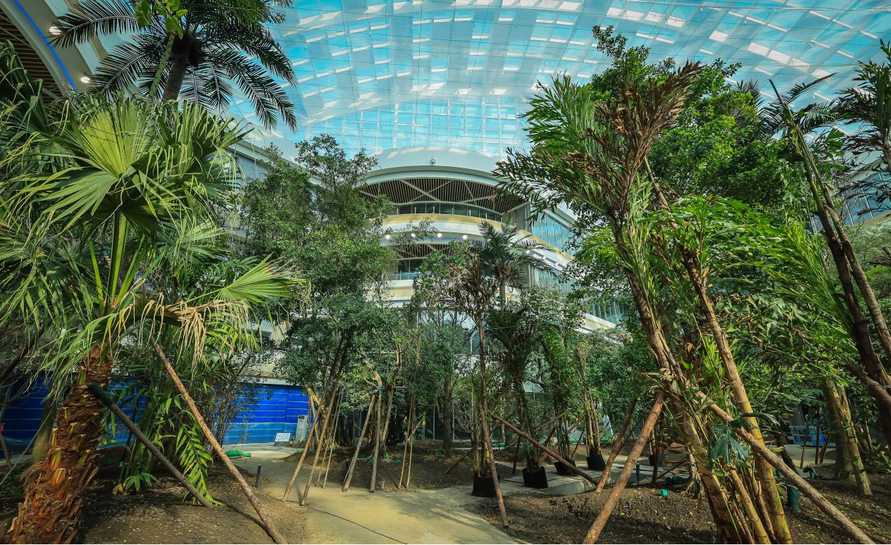 走進建設中的長春萬達茂,各商家即將進入到裝修階段,記者看到在碩大的一樓空間內(nèi),兩側(cè)密集分布著餐飲、服裝、文創(chuàng)、汽車等不同業(yè)態(tài)的品牌商家。穿過商場來到中庭,這里就是備受矚目的室內(nèi)雨林,在東北難得一見的熱帶珍稀植物在這里茂盛生長。