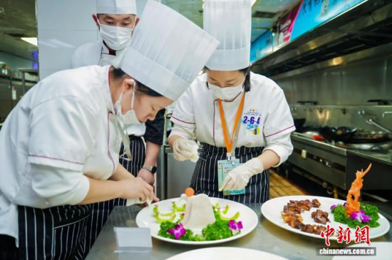 當(dāng)天上午,多支代表隊(duì)在后廚忙碌,操作臺(tái)上,參賽廚師依照藥膳指導(dǎo)師開具的方子,將精選的人參等藥材進(jìn)行預(yù)處理,再與母雞、松花江魚等主料一同入鍋!斑@道湯適合體虛者,我們控制了人參用量,確保其口味和養(yǎng)生功效。”一位選手介紹。