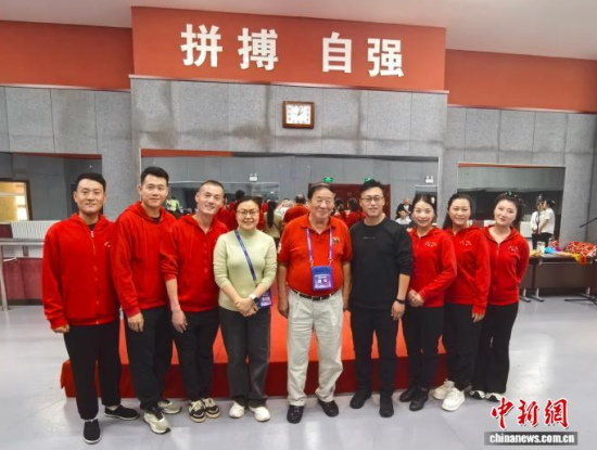 9月22日,吉林四平,戴锜(居中)在梨樹縣了解二人轉(zhuǎn)文化,與演員合照!堉梁 攝