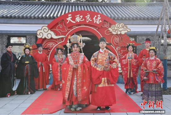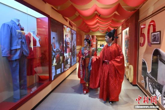 11月7日,偽滿皇宮博物院主辦的《天配良緣——近現(xiàn)代婚戀婚俗實(shí)物展》于長春開幕。展覽通過婚書、嫁妝等300余件民間實(shí)物,帶領(lǐng)參觀者沉浸式感受不同年代的婚禮婚俗,F(xiàn)場通過漢服走秀、嗩吶演奏等演出,展現(xiàn)傳統(tǒng)婚儀魅力。中新社記者 張瑤 攝