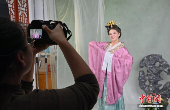 11月9日,在吉林長(zhǎng)春的一家漢服體驗(yàn)館,德國友人身著精美漢服拍攝寫真。近年來,漢服日益受到外籍人士青睞。該館已為超百名外籍人士提供漢服體驗(yàn)和拍攝服務(wù),讓他們?cè)诔两脚臄z中,了解中國傳統(tǒng)文化。中新社記者 張瑤 攝