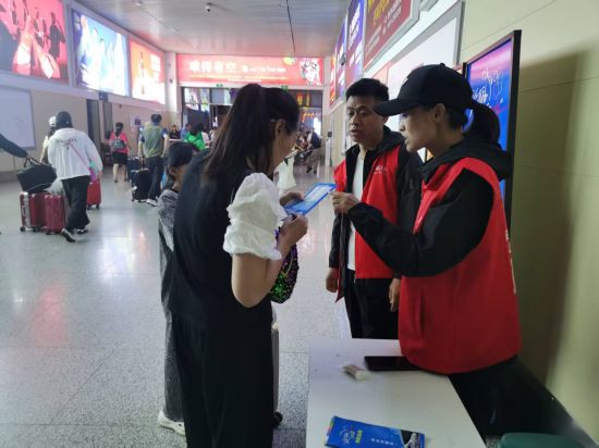 化身“福利官”,入延來敦有好禮。為確保能服務(wù)到每一位有需求的旅客,敦化高鐵站志愿服務(wù)窗口實行14小時三班輪值制度,每班3人,每日共9人在崗,設(shè)置宣傳展板、領(lǐng)取指南和咨詢服務(wù)點,保證在列車運營及游客出行時間段實現(xiàn)服務(wù)全覆蓋。按照發(fā)放政策,符合條件的人員可通過“線上+線下”的方式申領(lǐng)紅包或零錢包獎勵,志愿者們身著紅馬甲,在列車抵達(dá)時于出站口準(zhǔn)時就位,主動為旅客現(xiàn)場講解“迎客紅包”的申領(lǐng)政策、操作流程,并協(xié)助完成申報。與此同時,團(tuán)市委微信公眾號同步發(fā)布相關(guān)宣傳資訊,提升政策知曉率,讓旅客感受到滿滿誠意。