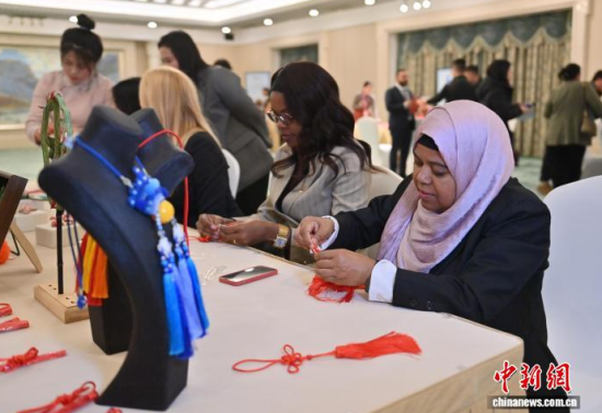 12月16日,由中國外交部組織的駐華使節(jié)代表團赴吉林省參訪。當(dāng)晚,代表團成員體驗了查干湖魚皮制作、長白山滿族剪紙、白氏面塑、繩編和趙家傳統(tǒng)古箏技藝等多項吉林省非物質(zhì)文化遺產(chǎn)代表性項目,近距離了解中國傳統(tǒng)技藝及其傳承現(xiàn)狀。中新社記者 張瑤 攝